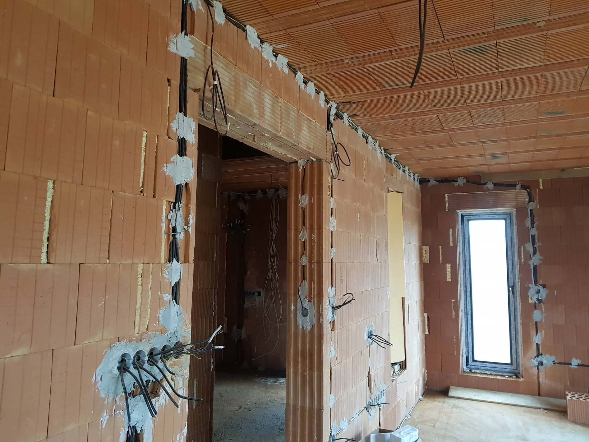 - Demontáž pôvodných rozvodov a inštalácia novej kabeláže s vysekaním drážok a vyspravením drážok.